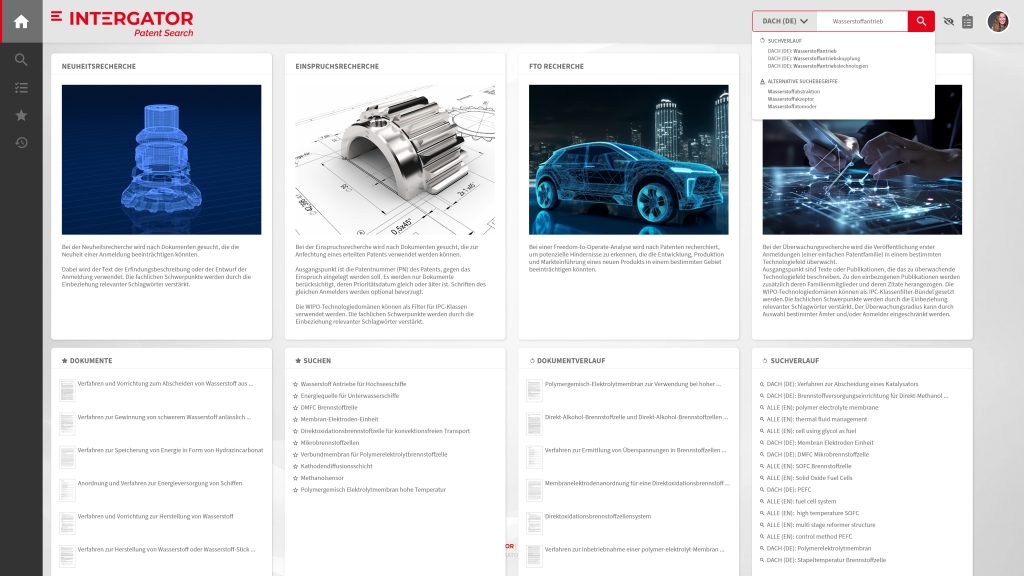 INTERGATOR Patent Search erleichtert den Einstieg. Smarte Recherche-Assistenten führen Sie Schritt für Schritt durch typische Szenarien wie Neuheitsprüfungen, Freedom-to-Operate-Analysen, Einspruchsrecherchen und Monitoring. Geben Sie einfach ein paar Eingaben vor – das System erstellt optimierte Suchanfragen und liefert in kürzester Zeit relevante Ergebnisse.